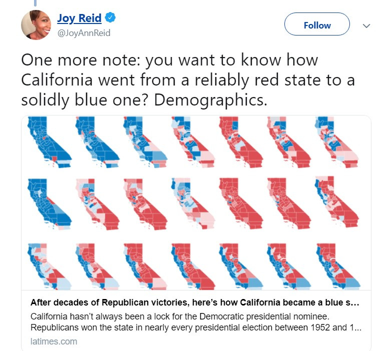 if the above graph is true, then how come Ronald Regan won California in two presidential landslides. Since 1952 is a crock of shite. More like 1995 is right.