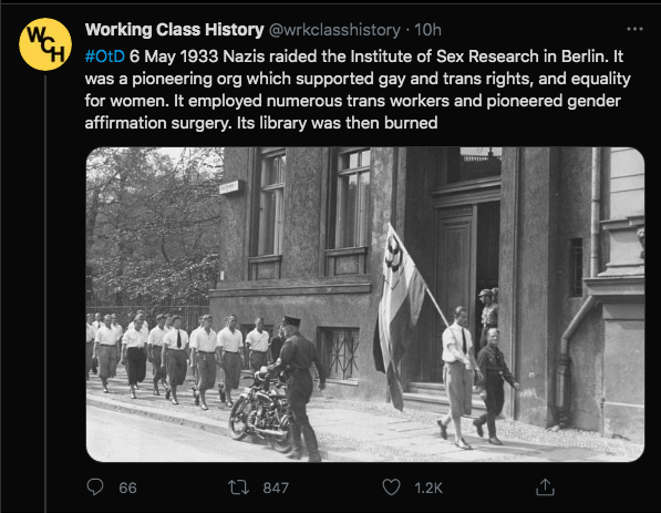 They’ll always tell you the National Socialists burned books, but they never tell you what those books were about, or whose books they were.